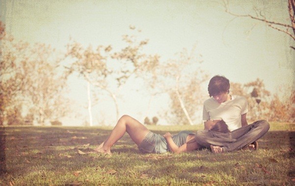 Love couple in garden.