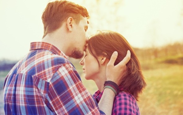 Romantic couple image,Boy kiss on girl forehead.